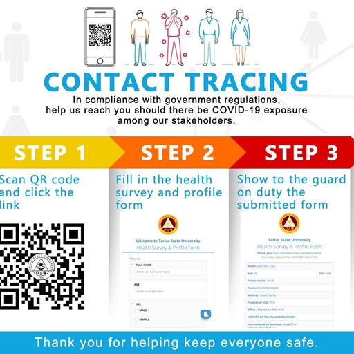 The Management Information Systems Office (MIS) of Tarlac State University has devised a contactless method to answer the health survey and profile forms for visitors. This endeavor is part of the university’s compliance with government regulations particularly on COVID-19 protocols.