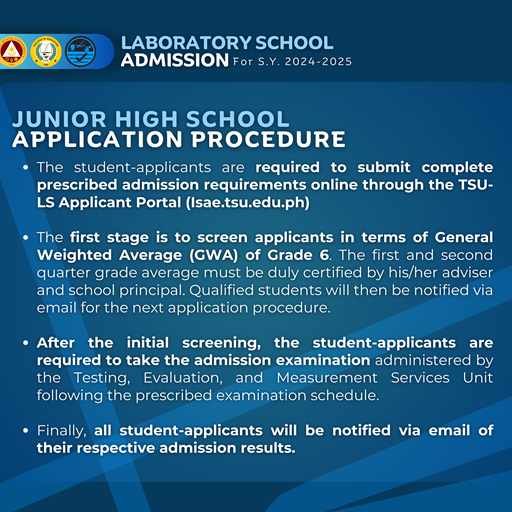 The online application for Tarlac State University-Laboratory School Admission Evaluation (TSU LSAE) will open on March 1, 2024 (Friday).