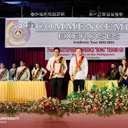 Hon. Christopher Lawrence "Bong" Tesoro Go, senator of the 18th and 19th Congress of the Philippines, graced the ceremony as the commencement speaker and shared his experiences as a public servant since 1998.